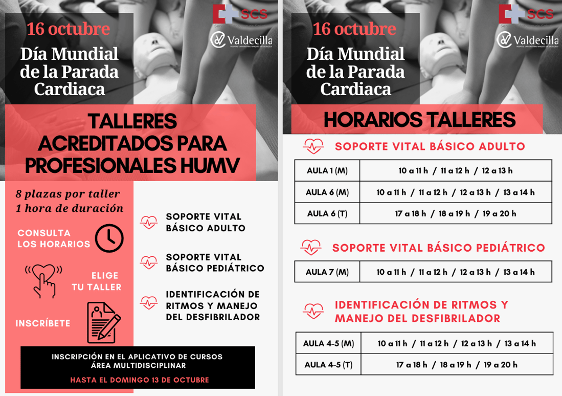 No pierdas la oportunidad de participar el 16 de Octubre en los talleres profesionales sobre soporte vital básico e identificación de ritmos y manejo de desfibrilador.